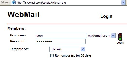 An alternative to 1) and 2) above is to display an edit box allowing a fully specified login. To setup webmail this way remove the thext "@btboydcpa.com" from the login.tpl file for the template set that you are using.
